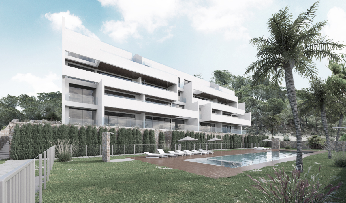 Het moderne gebouw omvat 22 appartementen met 2 of 3 slaapkamers en 2 badkamers. Alle appartementen zijn op het zuiden gericht met ruime terrassen en worden luxueus afgewerkt voor optimaal comfort. U kunt een verfrissende duik nemen in het gemeenschappelijke infinity zwembad.